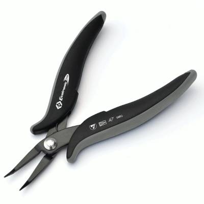 Antistatiska (ESD) spetsavbitartänger med böjda spetsar.
