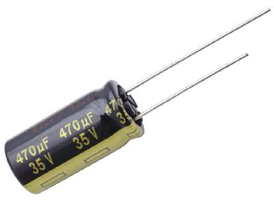 - Produktväg Startsida elektroniska-komponenterkondensatorerElektrolyt Elektrolytkondensator low-ESR vertikal modell 470uF 35V R-5