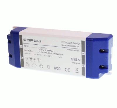 Switchat nätaggregat för LED-armaturer 12 V DC, 8,33 A, 100 W (LNH10012CV)